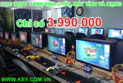Tin Học KEY xin giới thiệu với các bạn khóa học “ SỬA CHỮA MÁY TÍNH “. Học 3 tháng bao ra nghề. 100% thời gian học là thực hành. Mỗi học viên được thực hành trên 1 máy riêng biệt.